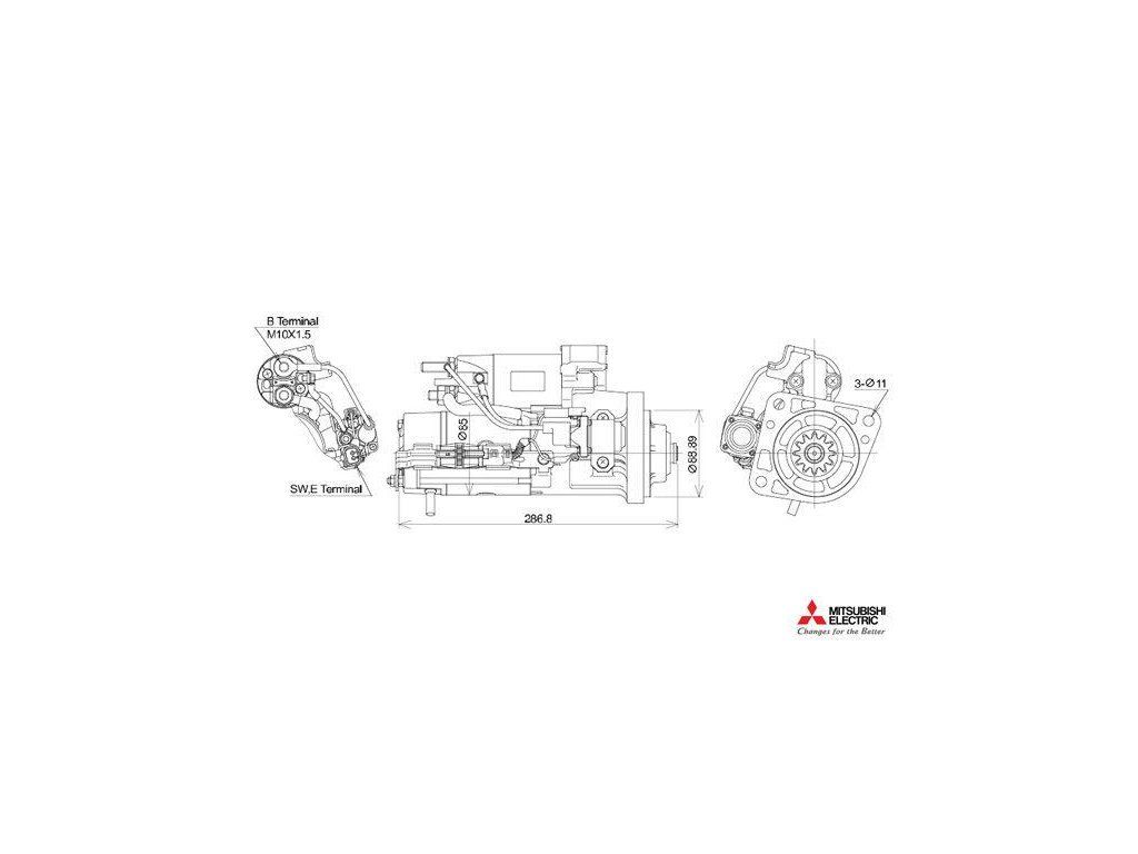 startér MAN TGL 4.6 6.9,TGM (verze MITSUBISHI) - 12 zubů, kratší příruba, nekrytý pastorek