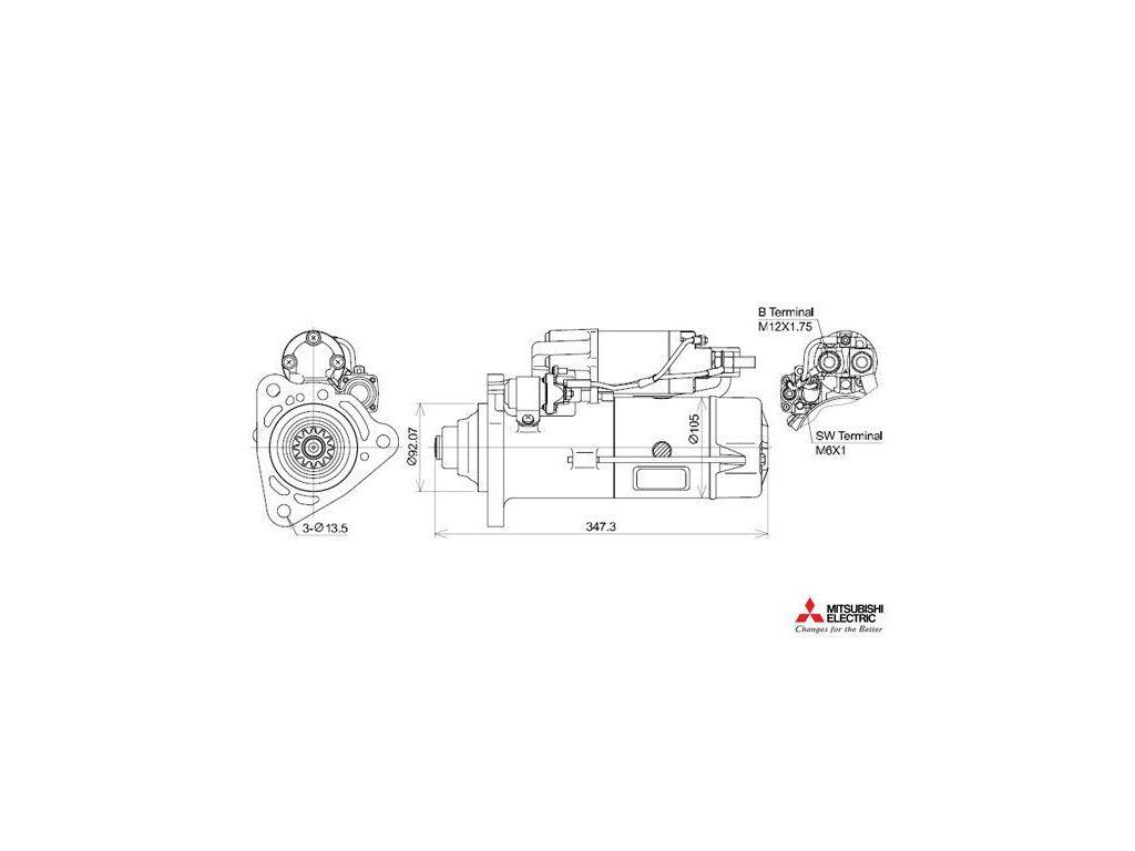 startér MB Actros, Axor, Setra, 24V 7kW - 12 zubů (nekrytý pastorek)